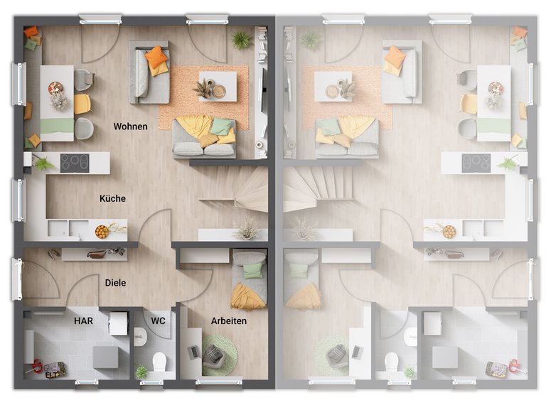 Das Doppelhaus Aura 115 ist die ideale Kombination aus urbanem Lebensgefühl und ländlichem Charme – und bietet viel Raum für eigene Ideen.